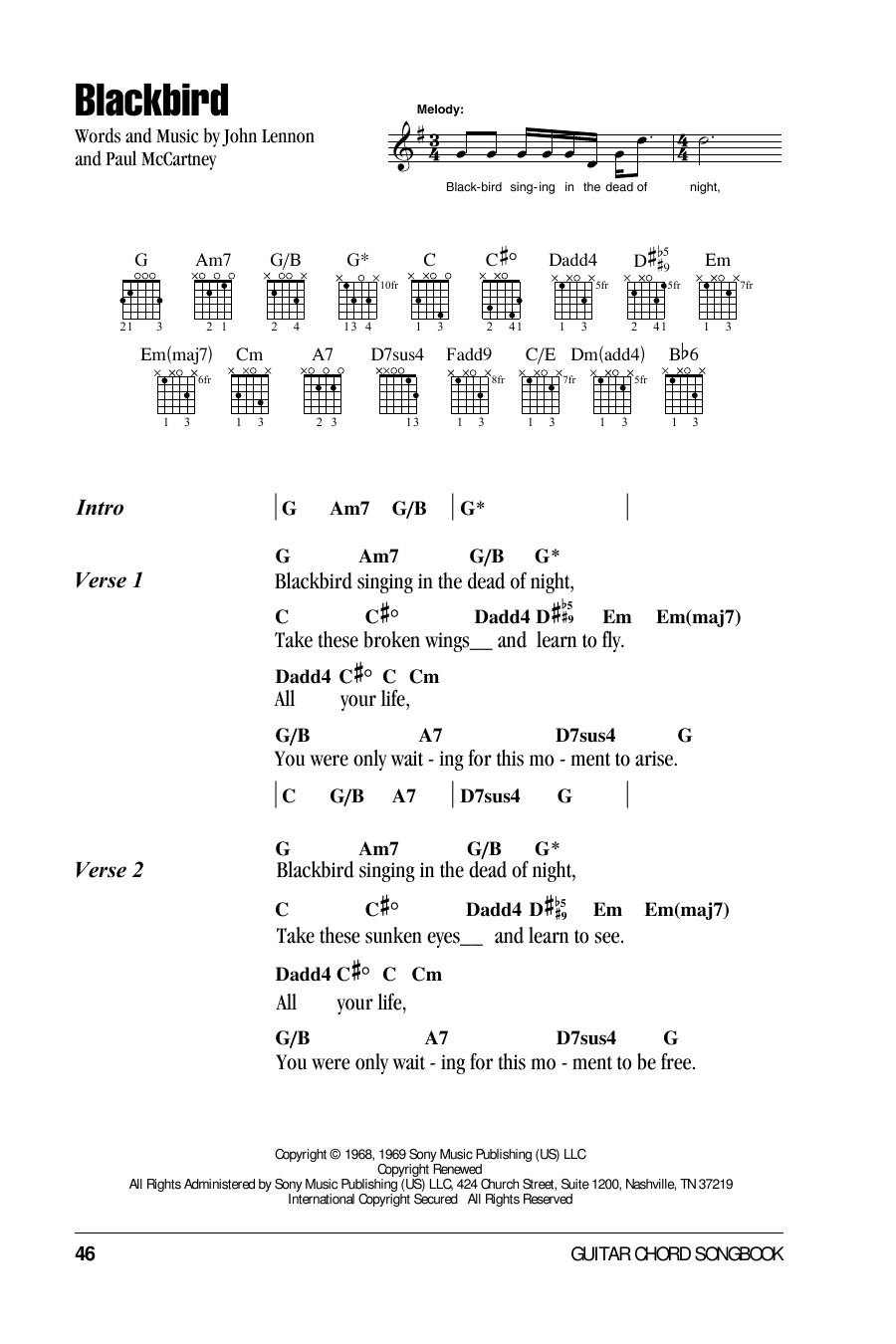 Blackbird (Guitar Chords/Lyrics)