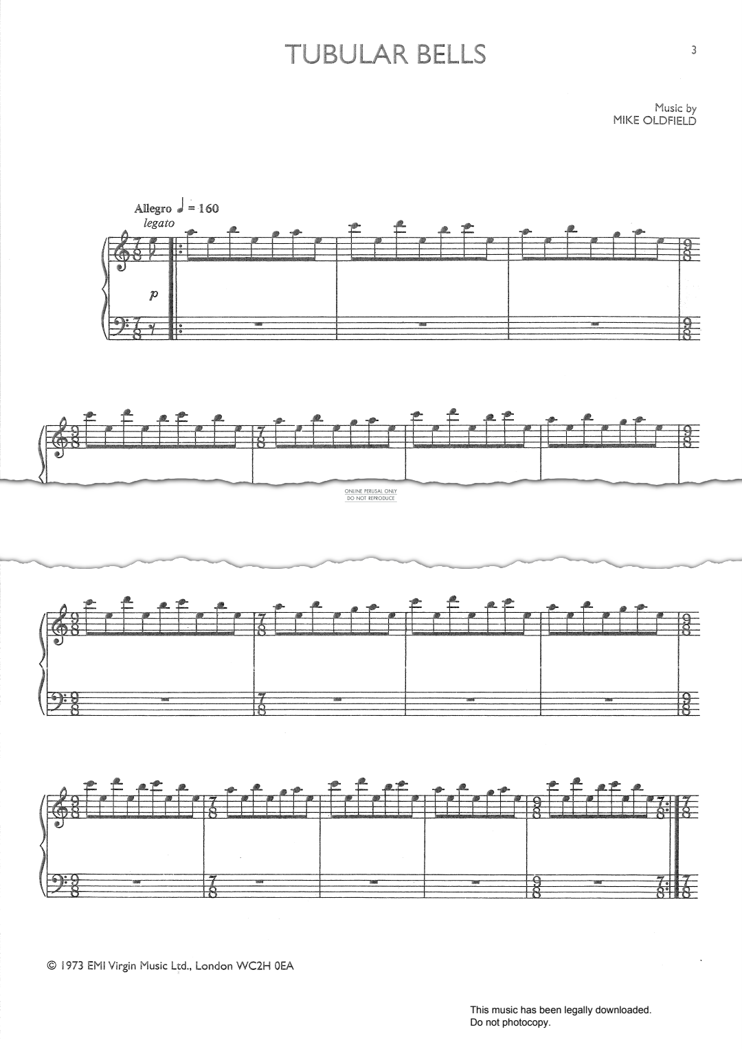 Tubular Bells, written by Mike Oldfield, arranged for piano solo.