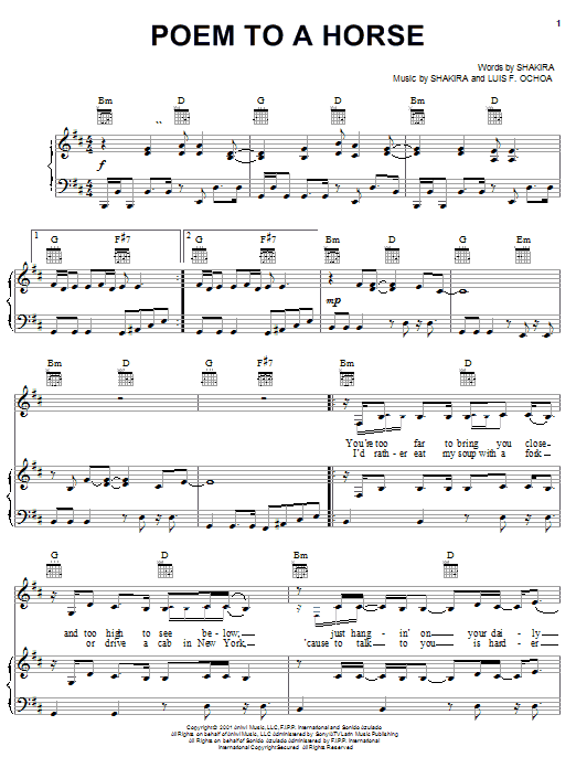 Poem To A Horse (Klavier, Gesang und Gitarrenakkorde (Melodie der rechten Hand))