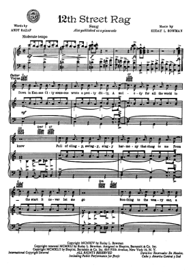 12th Street Rag - Noten für Klavier und Gesang Louis Armstrong Ragtime Standard
