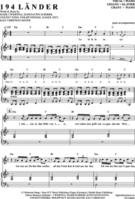 194 Länder - Noten für Gesang mit Klavierbegleitung Mark Forster