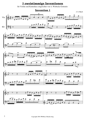 5 zweistimmige Inventionen - Noten für Violine und Kontrabass Johann Sebastian Bach