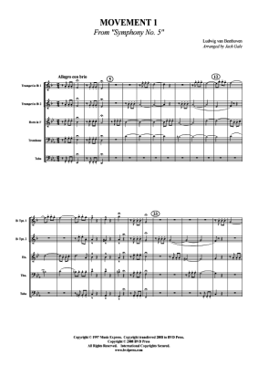 5.Sinfonie in c-Moll op. 67, 1.Satz - Noten fĂŒr BlechblĂ€serquintett Ludwig van Beethoven (arr. Gale)