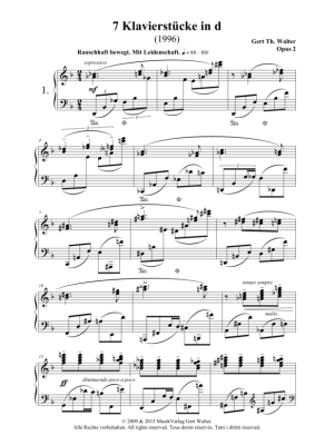 7 Klavierstücke in d - Noten für Klavier Solo Gert Walter