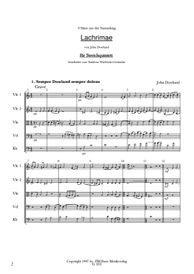 9 Sätze aus Lachrimae - Noten für Streichquintett John Dowland