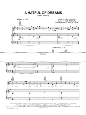 A Hatful Of Dreams (from 'Wonka') - Noten für Gesang, Gitarre, Klavier Timothée Chalamet