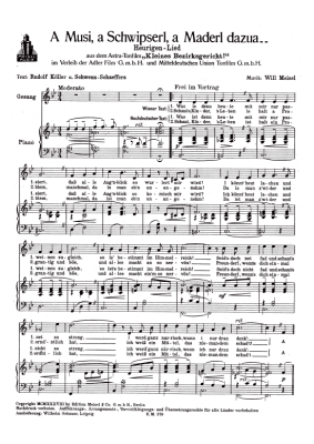 A Musi, a Schwipserl, a Maderl dazua (Heurigen-Lied) - Noten für Klavier und Gesang aus: Kleines Bezirksgericht (Film)