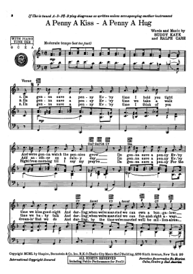 A penny a Kiss, A penny a hug - Noten für Klavier und Gesang Dinah Shore