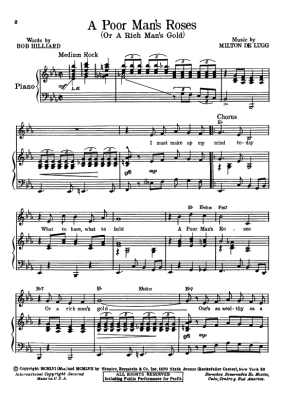 A Poor Man's Roses (or a Rich Man's Gold) - Noten für Klavier und Gesang Patsy Cline