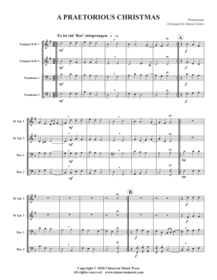 2 Trumpets and 2 Trombones or 2 Trumpets, Horn, and Trombone, medley of: Es ist einÂŽ RosÂŽ entsprungen, Geboren ist der Emanuel.