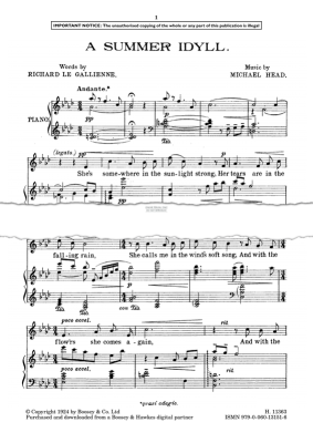 A Summer Idyll - Noten für Gesang, Klavier Michael Head