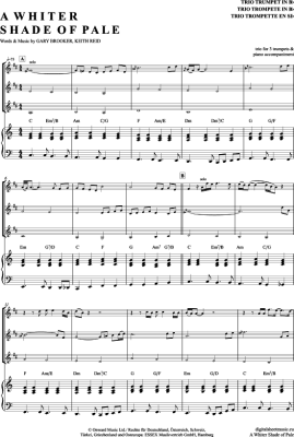 A Whiter Shade Of Pale - Noten für Trompeten Trio + Klavier Procol Harum