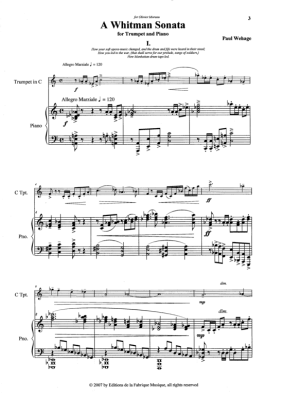 A Whitman Sonata - Noten für Trompete in B oder C + Klavier Paul Wehage