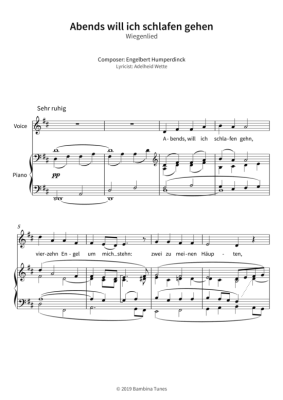 Abends will ich schlafen gehen - Wiegenlied - Noten für Gesang + Klavier Engelbert Humperdinck
