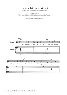 Aber schön muss sie sein (Geld ist nicht wichtig, aber scheen musse sein) - Noten für Klavier und Gesang Alex Berlin