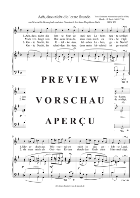 Ach, dass nicht die letzte Stunde BWV 439 - Noten für Gesang + Klavier/Cembalo/Orgel Joh. Seb. Bach