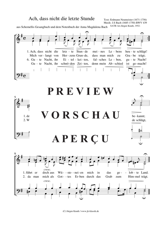 Ach, dass nicht die letzte Stunde BWV 439 (Gemischter Chor)