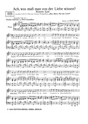 Ach, was muss man von der Liebe wissen? - Noten für Klavier und Gesang Foxtrott aus: Ein Herz für ein Lied
