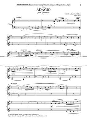 Adagio from 'Spartacus' - Noten für Klavier Aram Khachaturian