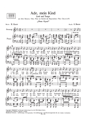 Ade, mein Kind - Noten für Klavier und Gesang aus dem Film: Peer Gynt