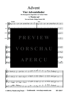 Advent - Vier Adventslieder - Noten für Horn Quartett Traditional