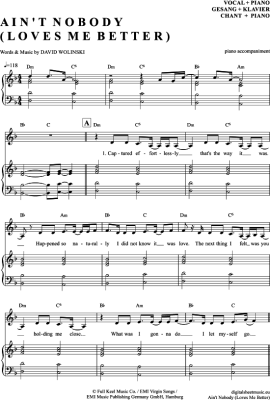 Ain´t nobody (loves me better) - Noten für Gesang mit Klavierbegleitung Felix Jaehn feat. Jasmine Thompson