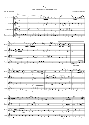 Air - Noten für Klarinetten Quartett 3x Klarinette in B und Bass Klarinette Johann Sebastian Bach