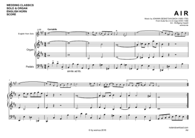 Air - Noten für Englischhorn + Orgel Johann Sebastian Bach (arr. WO)
