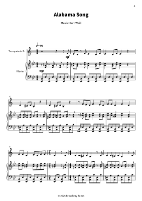 Alabama Song - Noten für Trompete in B und Klavier Kurt Weill