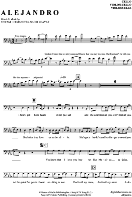 Alejandro - Noten für Violon-Cello Lady GaGa