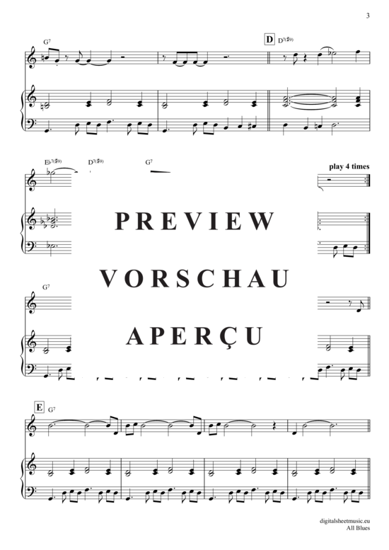 | „Kind of Blue“ ist ein Studioalbum des amerikanischen Trompeters Miles Davis, der im September 1991 im Alter von 65 Jahren in Santa Monica, Kalifornien starb. Das Album wurde innerhalb von zwei Tagen in einem Studio in der New Yorker 30. Straße aufgenommen, das sich in einer ehemaligen Kirche befand und ist im Jahre 1959 bei Columbia Records erschienen. Es verkaufte sich weltweit über 10 Millionen mal und ist damit das meistverkaufte Album in der Jazz-Geschichte. Das „Rolling Stone Magazine“setzte das Album auf Platz 2 der 50 besten Jazz-Alben aller Zeiten. Das Album gilt als Meilenstein in der Geschichte des Jazz auf dem ein völlig neuer Stil zu hören ist, der seitdem mit dem Begriff „modaler Jazz“ umschrieben wird, eines Kompositions- und Improvisationstils, dessen Kennzeichen eine „modale“ Tonleiter (Kirchentonleiter) ist, mit deren Material man über mehrere Takte oder sogar über das ganze Stück improvisieren konnte ohne sie zu wechseln. Das bedeutete für die Musiker/ innen mehr Freiheit im Umgang mit dem Tonmaterial und eröffnete ihnen völlig neue Möglichkeiten der künstlerischen Entfaltung und Gestaltung. (Quelle: Wikipedia) Hörbar ist diese Entwicklung auch auf der Aufnahme des Titels „All Blues“, der am 22. April 1959 als letztes Stück eingespielt wurde. Vor allem das prägnante Thema mit der chromatischen Akkord-Rückung im Takt 10 kann gut und gerne als musikalisches Experiment bezeichnet werden, das die 12-taktige Blues-Form auf der Dominante (Stufe V) aufbricht und zum Schweben bringt (D7#9 - Eb7#9 - D7#9 = große und kleine Terz erklingen gleichzeitig im Oktavabstand = berühmter Funk-Akkord). Die dadurch erzeugte Spannung löst sich danach wieder in den G7-Akkord auf und erzeugt ein angenehmes Gefühl der Entspannung. Die darauf folgende Improvisation von Davis ist ein Musterbeispiel der neuen „modalen“ Spielweise und ein Ausdruck einer musikalischen Befreiung. Hinweis zur Tonartbezeichnung: Um unsere Kunden nicht zu verunsichern, haben wir uns entschlossen, die Tonartbezeichnung nach den vorhanden Vorzeichen zu wählen, also C-Dur (A- und E-Dur für die transponierenden Instrumente). Ganz korrekt ist diese Bezeichnung aber nicht, da der Titel eigentlich in einer Kirchentonart notiert ist (siehe auch Realbook 1), ein Kompositions- und Improvisationsmodus, der unter Jazzmusikern im Laufe der letzten 50 Jahre wieder zunehmend an Bedeutung gewonnen hat ( Der Wendepunkt war eben dieses legendäre Album von Miles Davis „Kind of Blue“, das im Jahre 1959 erschienen ist). Demnach steht der Jazz-Standard „All Blues“ in der Kirchentonart G-Mixolydisch, mit dem Grundton auf der 5. Stufe der C-Dur Tonleiter, also auch mit den dazugehörigen Vorzeichen. Der Leitton Fis wird dabei nach F aufgelöst, d. h. eine G7-Tonleiter wird als Tonmaterial für das Stück verwendet. Der Grund für diesen Modus-Wechsel könnte die Suche nach einer neuen, eigenständische Klangfarbe sein die durch die Note F (im Jazz „Blue-Note“ genannt) ungewohnt-fremd-orientalisch und deswegen interessanter und reizvoller klingt als eine normale G-Dur Tonleiter. Sikora schreibt in seiner Jazz-Harmonielehre: „Im Jazz werden über Dur und reines Moll hinaus eine Reihe von Skalen verwendet, die in Aufbau und Bezeichnung den Kirchentonarten des byzantinischen und griechischem Altertums entsprechen bzw. von diesen abgeleitet sind. Fast jeder, . . . lernt sie als Verschiebungen (Permutationen) der Durtonleiter kennen.“ . . . „Man spricht daher auch vom ionischen System“ (vgl. den Artikel „Kirchentonarten“ in: Frank Sikora, Neue Jazz-Harmonielehre, 5. Aufl. 2003, S. 45 ff. Schott Verlag). | ||