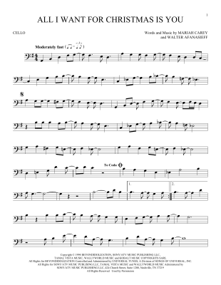 All I Want For Christmas Is You - Noten für Violoncello Mariah Carey