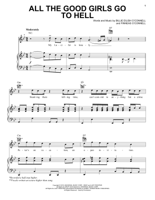 all the good girls go to hell - Noten für Gesang, Gitarre, Klavier Billie Eilish