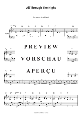 Dieses Notenheft enthält die Originalnoten zum Kinderlied "All Through The Night" für Klavier. Leichter Schwierigkeitsgrad in F-Dur.