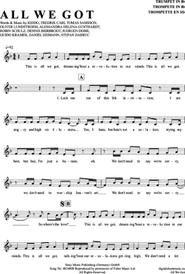 All We Got - Noten für Trompete in B Robin Schulz und Kiddo