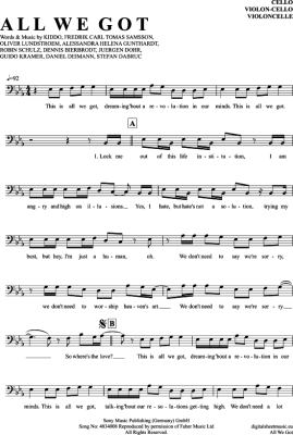 All We Got - Noten für Violoncello Robin Schulz und Kiddo