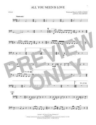All You Need Is Love - Noten für Violoncello The Beatles