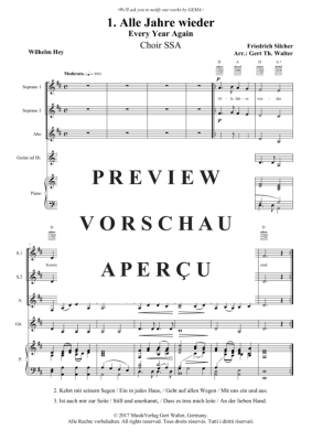 Alle Jahre wieder - Noten für Frauenchor, Gitarre + Klavier Friedrich Silcher