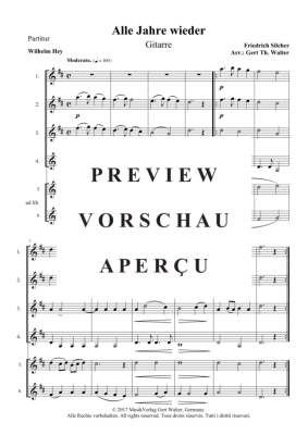 Alle Jahre wieder - Noten für 4-6 Gitarren Friedrich Silcher