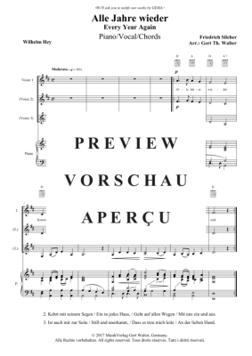 Alle Jahre wieder - Noten für 1-3 Gesangsstimmen + Klavier Friedrich Silcher
