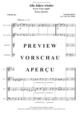 Alle Jahre wieder - Noten für Blechbläserquartett Friedrich Silcher