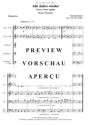 Alle Jahre wieder - Noten für Blechbläserquintett Friedrich Silcher