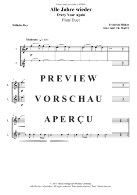 Alle Jahre wieder - Noten für Flöten Duett Friedrich Silcher