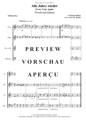 Alle Jahre wieder - Noten für Holzbläser Quartett Friedrich Silcher