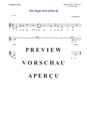 Alle Vögel sind schon da ist ein beliebtes Frühlingslied und für den fortgeschrittenen Trompeter bestens geeignet. Dazu 3 Liedstrophen. (C - Dur)