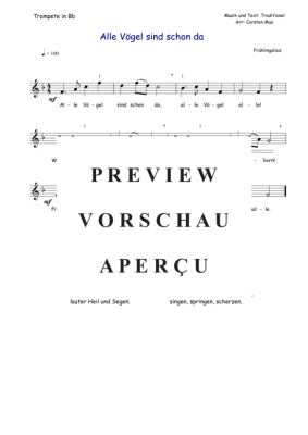 Alle Vögel sind schon da ist ein beliebtes Frühlingslied und für den fortgeschrittenen Trompeter bestens geeignet. Dazu 3 Liedstrophen. (F - Dur)