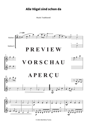 Alle Vögel sind schon da - Noten für Streicher Duett Traditional