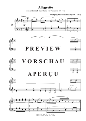Allegretto - Noten für Klavier Solo Wolfgang Amadeus Mozart