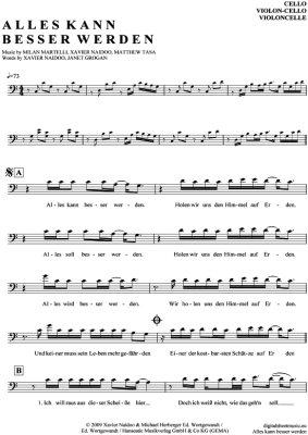 Alles kann besser werden - Noten für Violon-Cello Xavier Naidoo