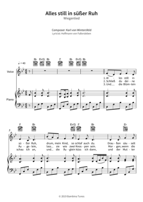 Dieses Notenheft enthält die Originalnoten zum Wiegenlied "Alles still in süßer Ruh" für Klavier, Gesang und Gitarre. Leichter Schwierigkeitsgrad in B-Dur.